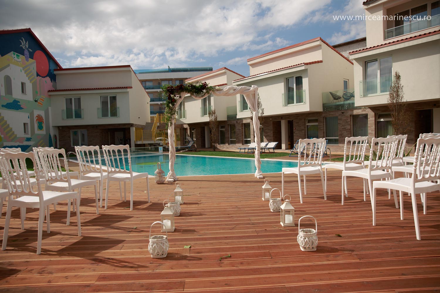 Imaginați-vă ceremonia la apus, cu liniile moderne ale spațiului lăsând loc emoției.